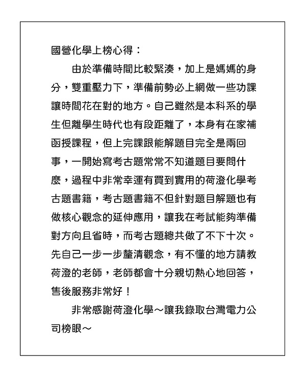 108年國營化學榜眼心得