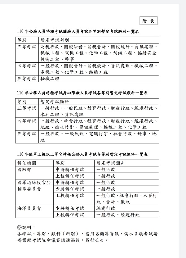 2021關務特考暫定科別 2020 年 11 月 9 日 關務特考暫定科別三等、四等都有招化工明年4/24-4/25考試 以往的時程11月底公布總名額先看總名額就可以知道大概11月底公布各科名額3月底增列4月底考試 要考關務的同學差不多該開始準備了不知道今年名額如何