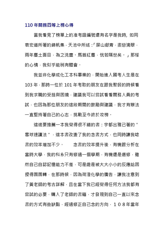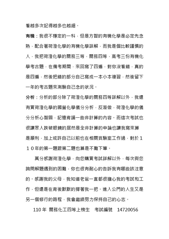 110年關務化工上榜心得