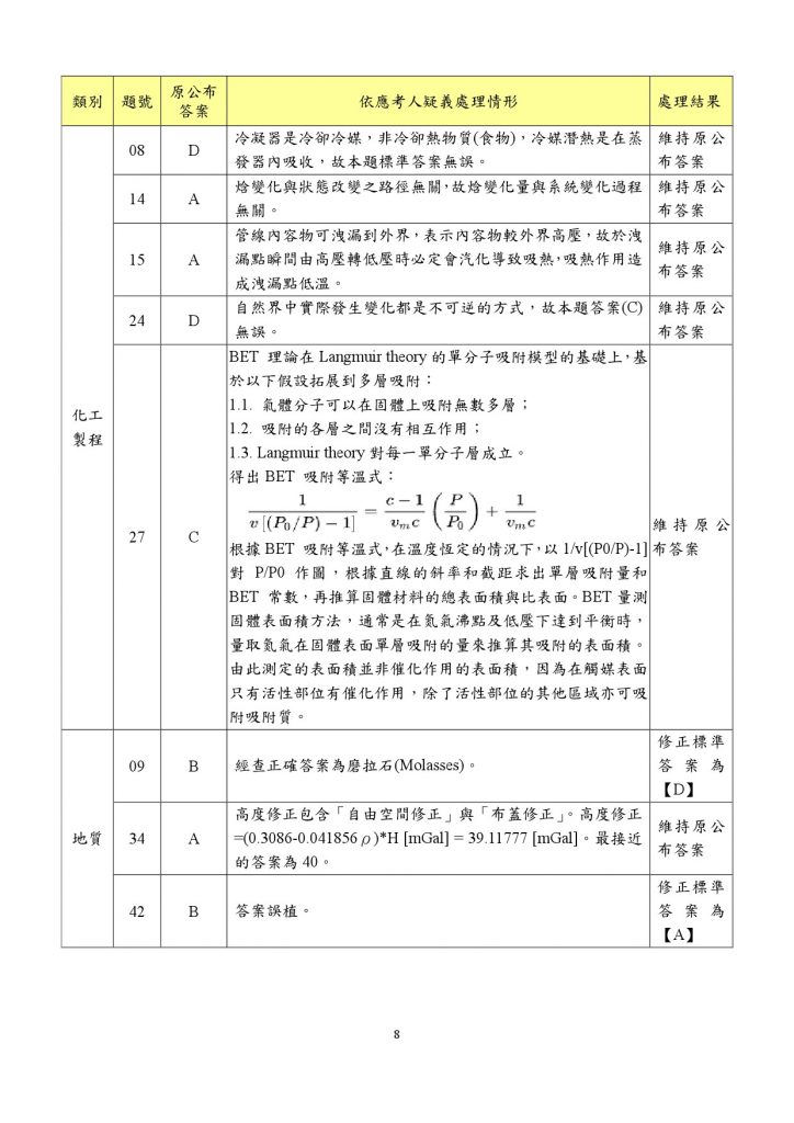 很意外的 化工A答案全部維持不變