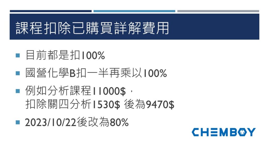 調整課程價格 2023 年 9 月 8 日 2023/10/22後課程扣掉詳解的費用改為80%其他補習班都沒有扣除的機制重複購買的書可以扣掉80%已經算很好了 另外10月起調降蝦皮優惠券蝦皮手續費太高了 又一堆規定 只能調降優惠其他平台維持原狀如須購買可至官網