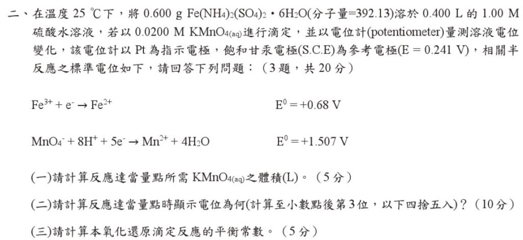 111年國營化學二、(二) 電化學26