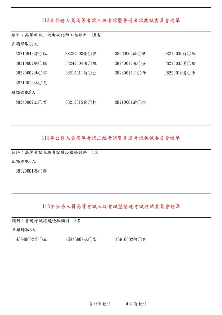 113年高普考放榜