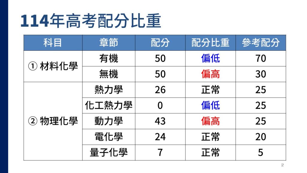 明年的考生建議多準備些無機,會比較安全