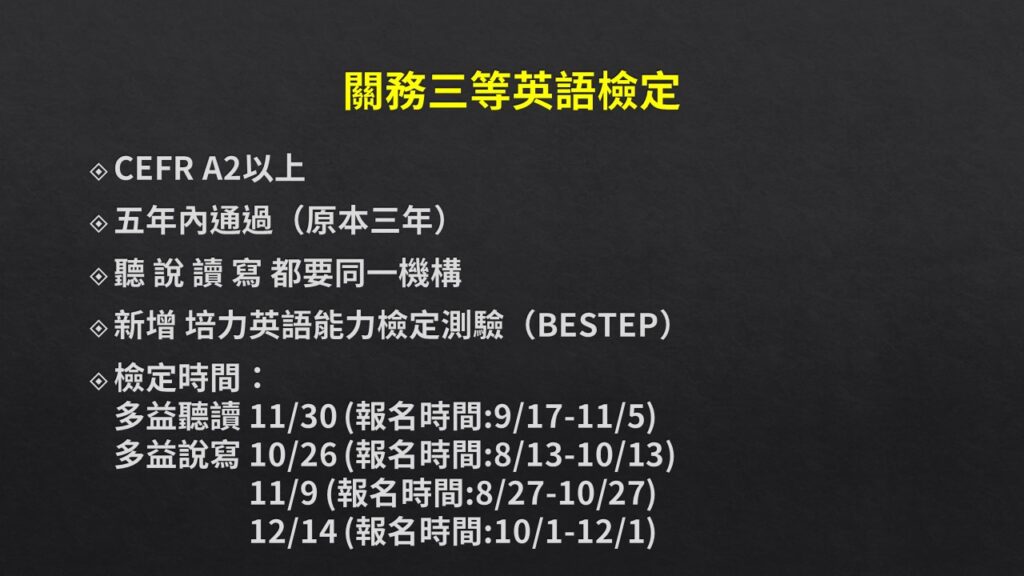 三等要通過英語檢定才能報考(A2以上)