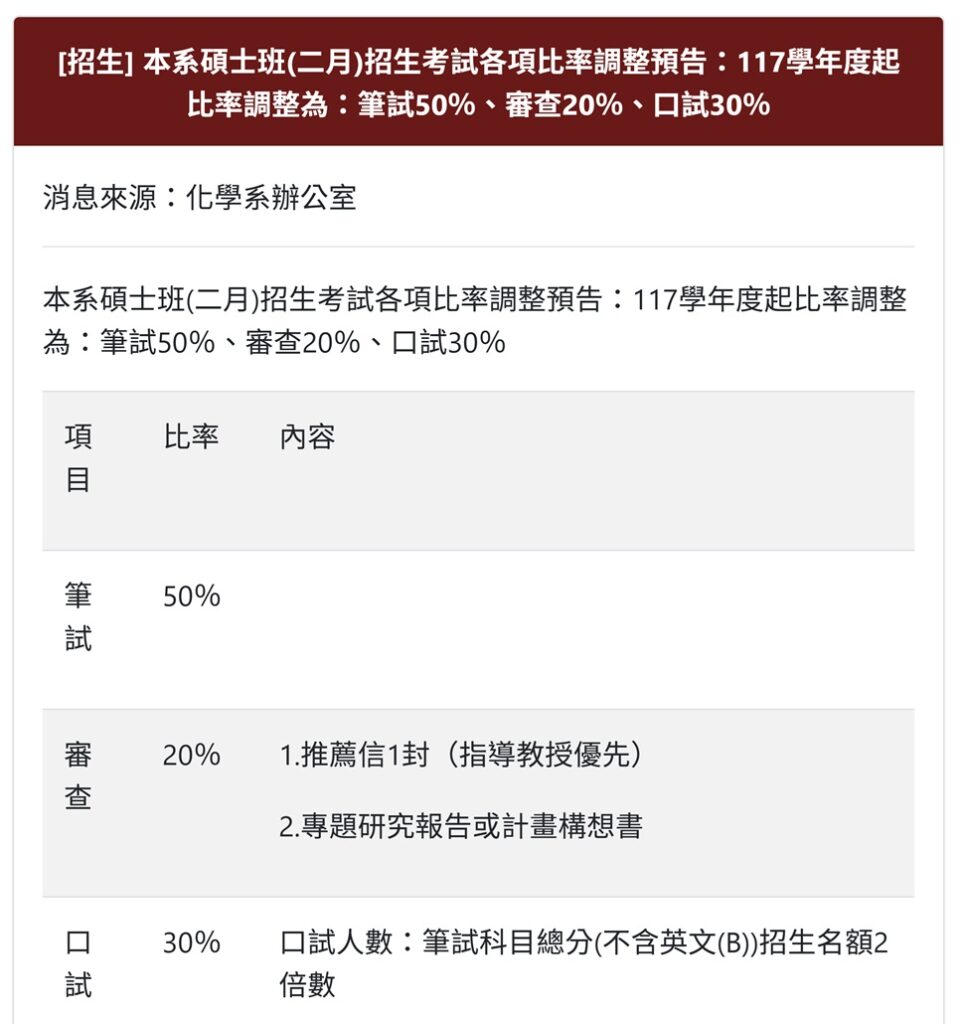 117 年台大化學所「考試入學」報名人數,很可能會腰斬。