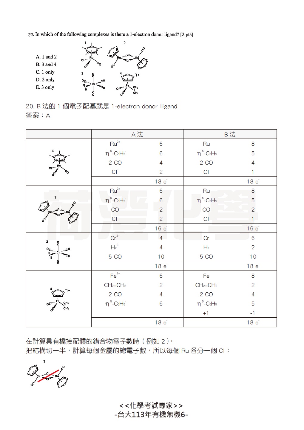整張考卷都在考有機金屬