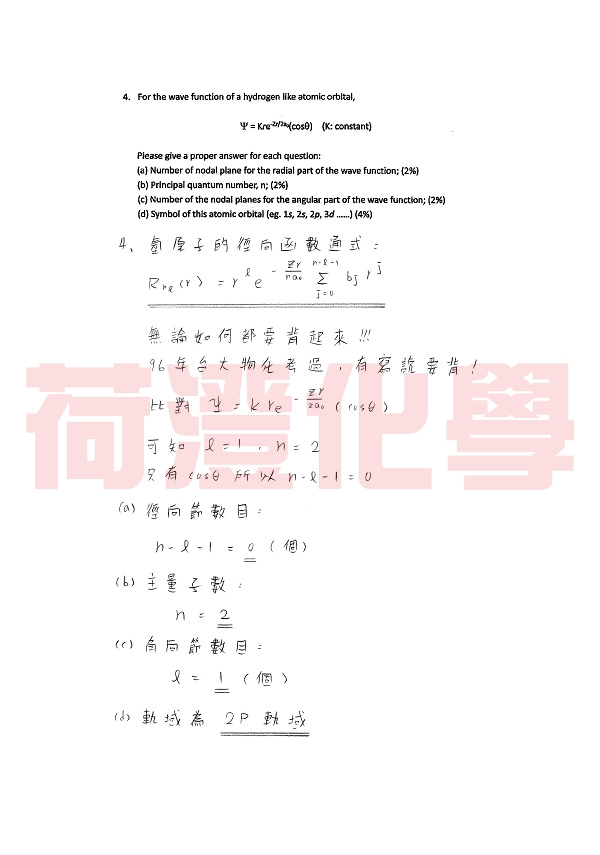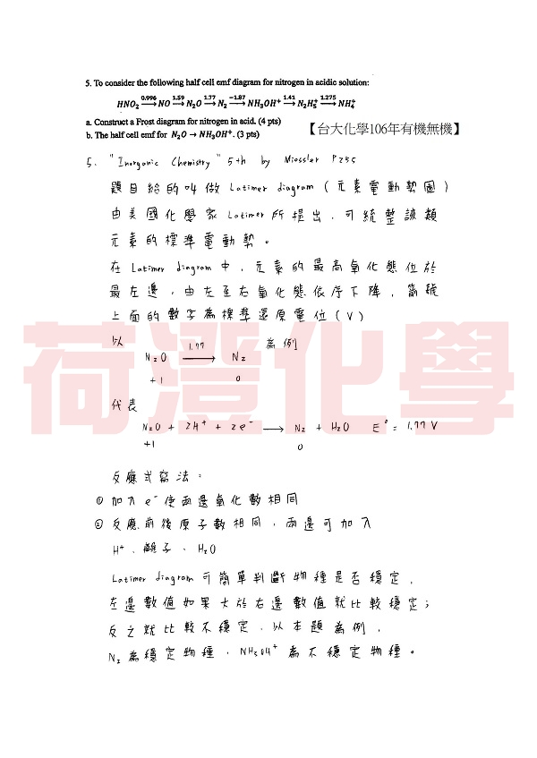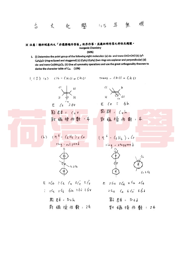 【荷澄化學】 台大化學所 研究所 無機化學 歷屆考古題