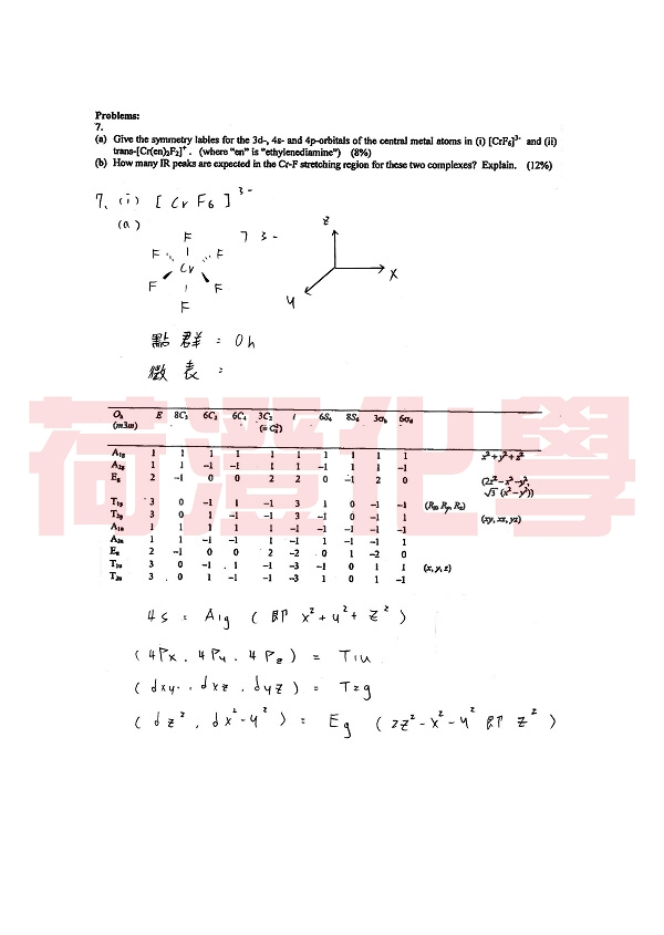 台大化學所 無機化學應屆考古題詳解