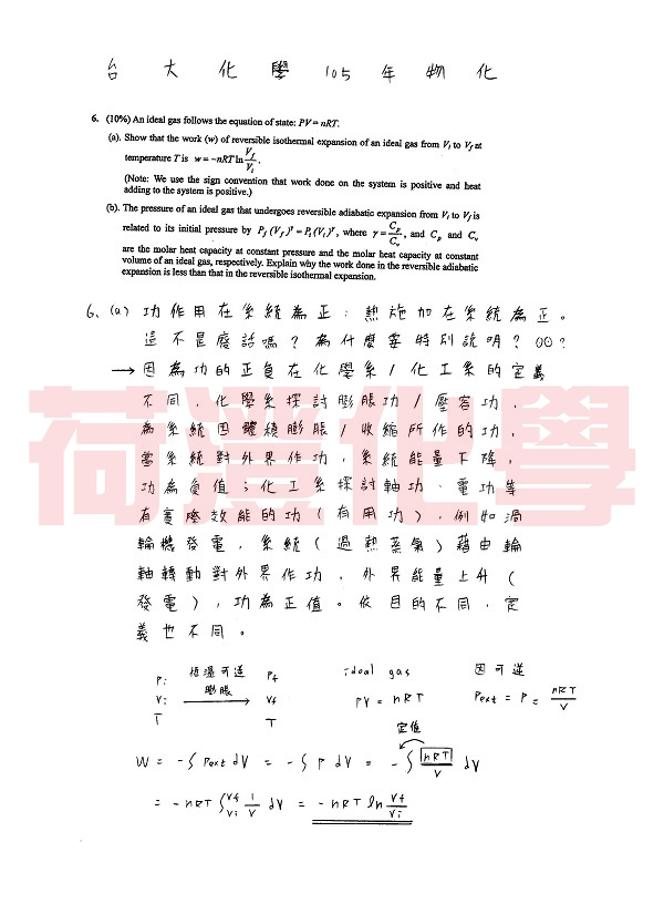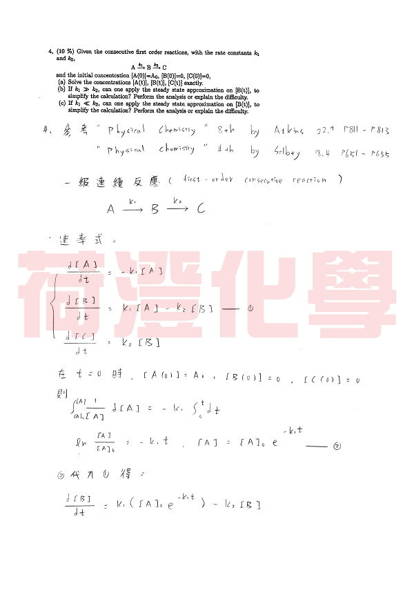 台大化學所物理化學應屆考古題詳解 適用於:台大化學所