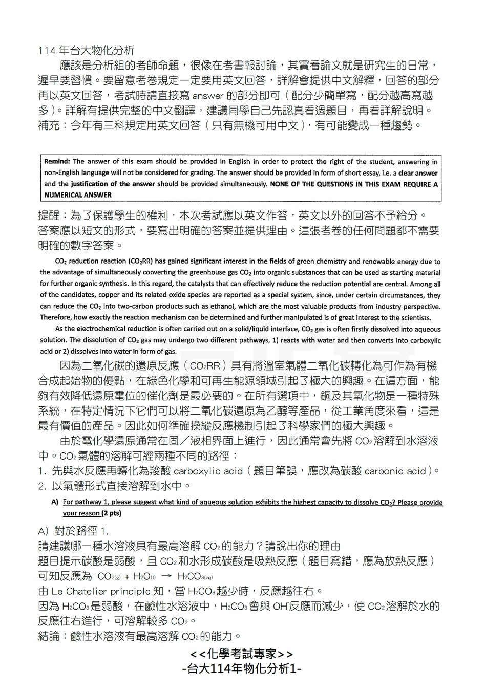 物化近年難度起伏很大是很關鍵的科目113年的考題中規中矩114年物化分析難到爆,全英文作答,考題天馬行空,應該是物化組的馬老師命題(外籍老師),老師看不懂中文要小心115年很有可能也是同一個老師命題